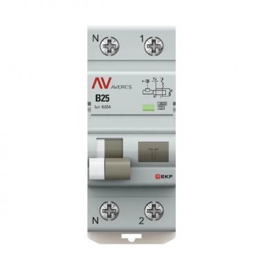 Автоматический выключатель дифференциального тока DVA-10 1P+N 25А характеристика B 30мА тип A электромеханический 10кА AVERES EKF