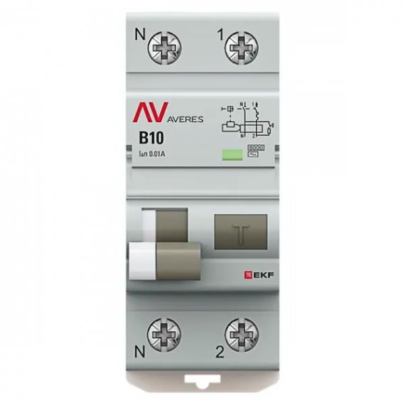 Автоматический выключатель дифференциального тока DVA-6 1P+N 10А характеристика B 10мА тип AС электромеханический 6кА AVERES EKF