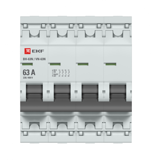 Выключатели нагрузки ВН-63N EKF PROxima являются обновлённой платформой успешно зарекомендовавших себя на рынке линейки выключателей нагрузки ВН-63 EKF PROxima. Выключатели нагрузки являются механическими коммутационными аппаратами и применяются для оперативных включений и отключений в электрических цепях переменного тока. Выключатели предназначены для коммутации активных и индуктивных нагрузок, включая двигатели, уже защищенные другими коммутационными аппаратами. Особенностью данной серии является усовершенствованная конструкция. В выключателях имеются пластиковые крышки, закрывающие доступ к винтовым зажимам и служащие для опломбирования выключателей, что исключает несанкционированный доступ к проводникам. Корпус выключателей усилен дополнительными заклепками для обеспечения его максимальной жесткости. Выключатели оборудованы удобной рукояткой управления, обеспечивающей надежное оперирование аппаратами. На лицевой панели выключателей нагрузки имеется цветовой индикатор реального состояния контактов. Конструкция двухпозиционного зажима обеспечивает удобный монтаж выключателя на DIN-рейку.