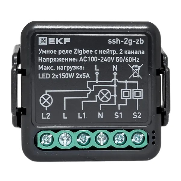 EKF ssh-2g-zb Умное реле в подрозетник 2-канальное с нейтралью Zigbee