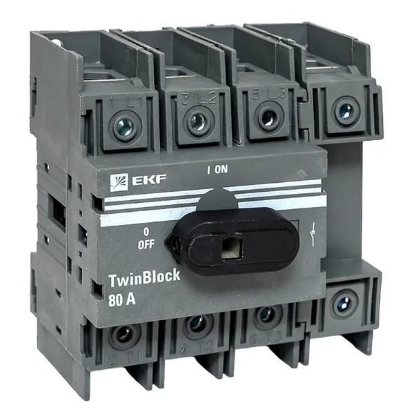 Рубильники серии TwinBlock предназначены для пропускания номинальных токов, включения и отключения электрических цепей номинальным напряжением до 690 В переменного тока частотой 50 и 60 Гц в устройствах распределения электрической энергии. Выключатели-разъединители серии TwinBlock (модели 40-800 А) имеют возможность подключения дополнительного четвертого полюса.