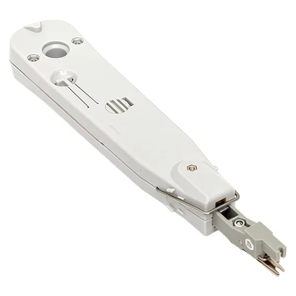 Инструмент для заделки витой парыв кросс-панель TERACOM TRC-S50 EKF предназначен для заделки и обрезки проводников во врезные контакты на кроссах, патч-панелях, розетках и модулях, заделка контактов 110 типа и типа KRONE. Изделие оснащено встроенным ножом с функцией обрезки, а также встроенным комбинированным крючком и плунжером.
