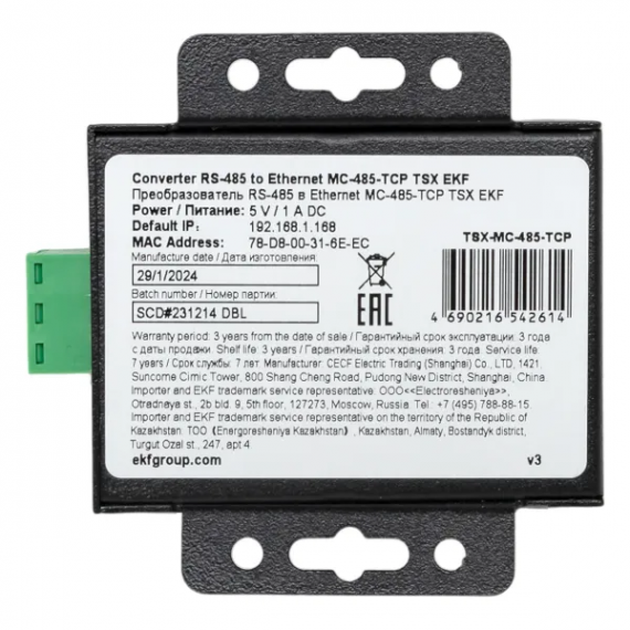 EKF TSX-MC-485-TCP Преобразователь RS-485 в Ethernet MC-485-TCP TSX