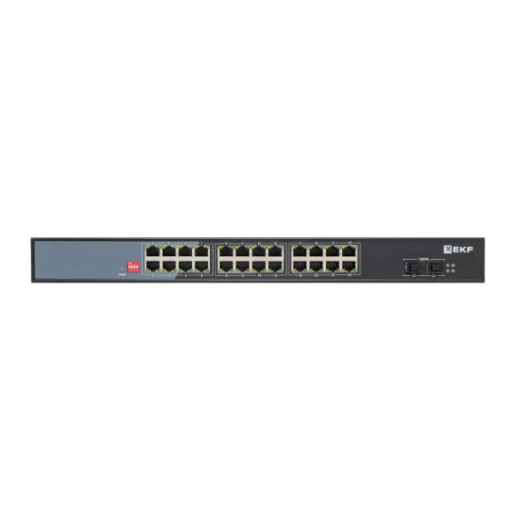 Промышленный неуправляемый коммутатор U-2GX/SFP-24GTP-R, 2 порта 1000Base-X SFP, 24 порта 10/100/1000Base-T(X) RJ45 c PoE, монтаж в 19" стойку TSX EKF
