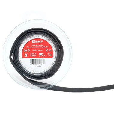 Термоусаживаемая трубка ТУТ нг 6/3 черная ролик 2 м EKF