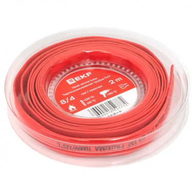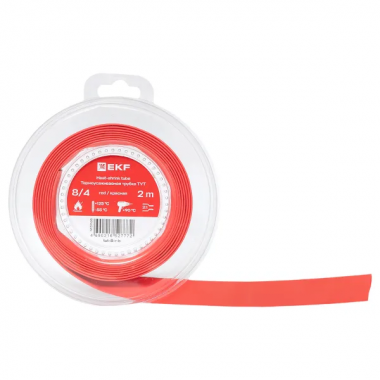 Термоусаживаемая трубка ТУТ нг 8/4 красная ролик 2 м EKF