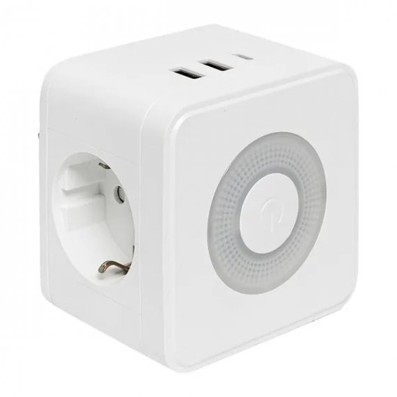 Тройник "Куб" 2 гнезда 2USB 2,4А+Type C + Ночник