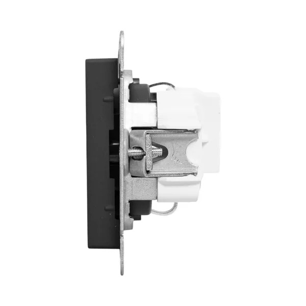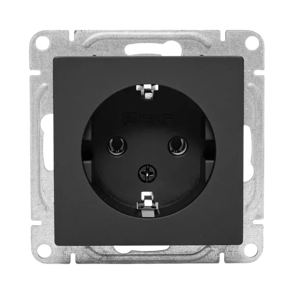 Механизм розетки, 16А, с заземлением, без шторок, чёрный Эпика EKF