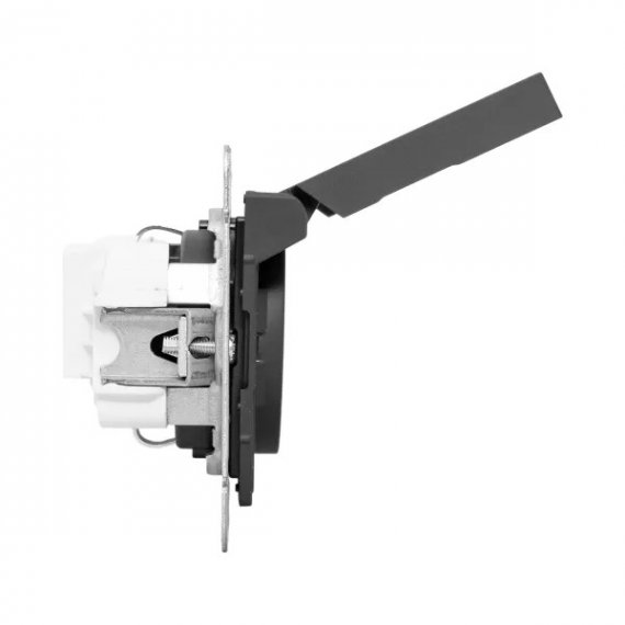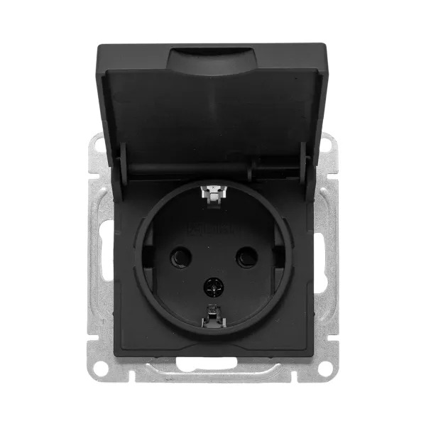 Механизм розетки, 16А, IP44, с заземлением, со шторками, c крышкой, чёрный Эпика EKF