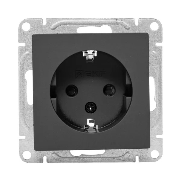 Механизм розетки, 16А, с заземлением, со шторками, чёрный Эпика EKF