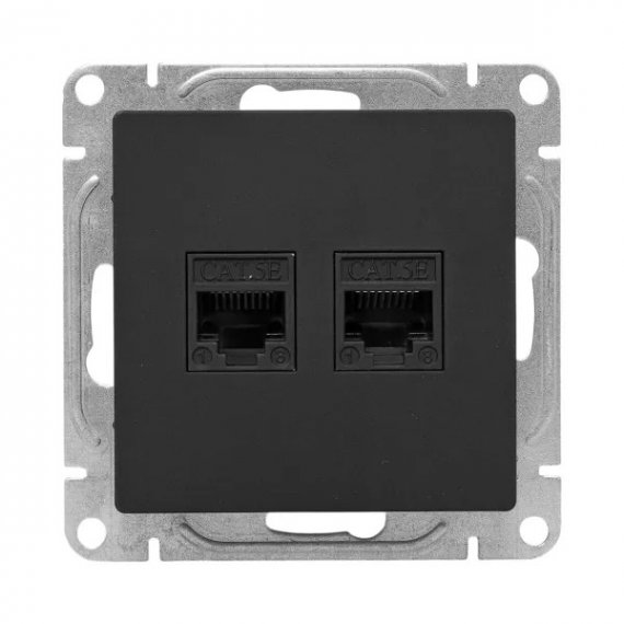 Механизм розетки RJ45 - 2шт, (cat5), чёрный Эпика EKF