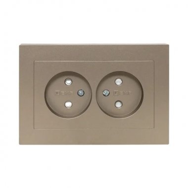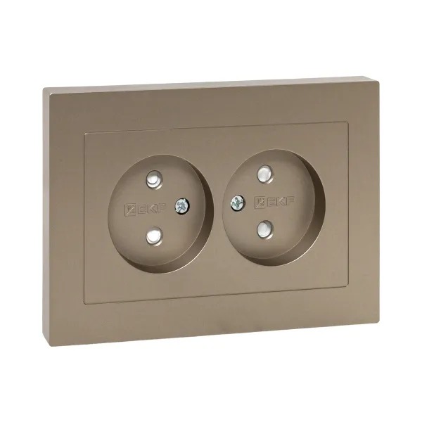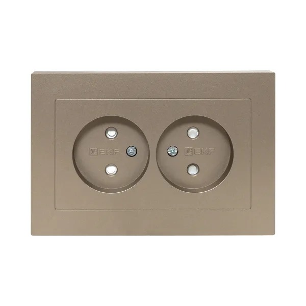 Механизм розетки двойной, 16А, без заземления, со шторками, с рамкой, шампань Эпика EKF