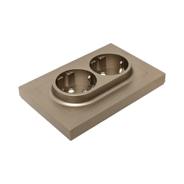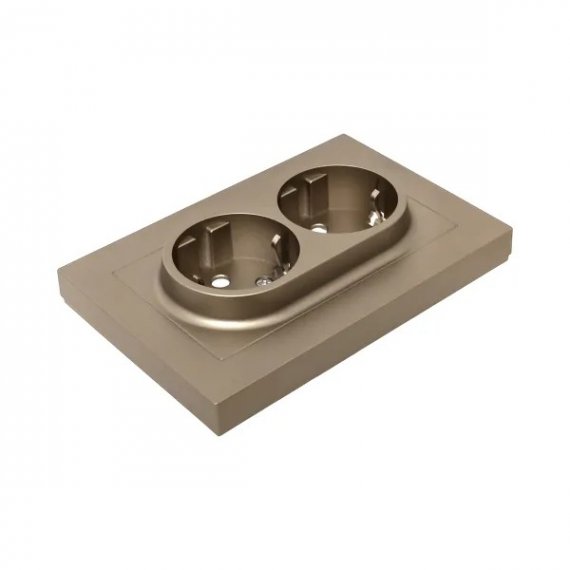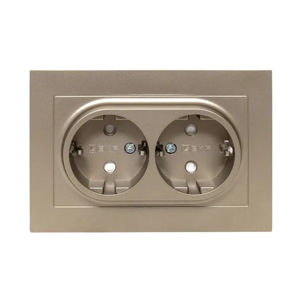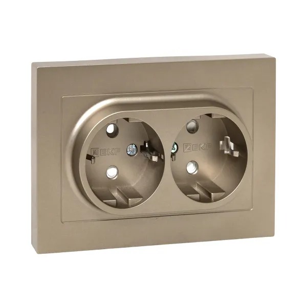 Механизм розетки двойной, 16А, с заземлением, со шторками, с рамкой, шампань Эпика EKF