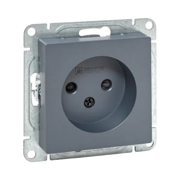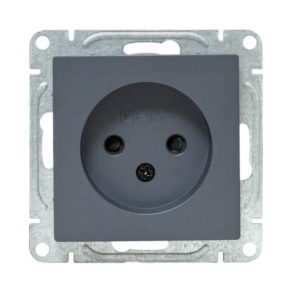 Механизм розетки, 16А, без заземления, со шторками, графит Эпика EKF