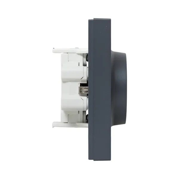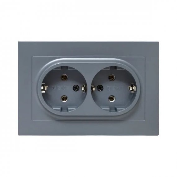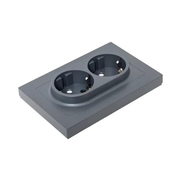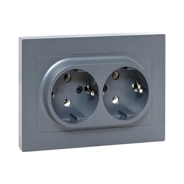 Механизм розетки двойной, 16А, с заземлением, без шторок, с рамкой, графит Эпика EKF