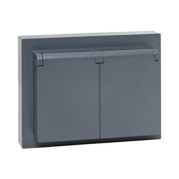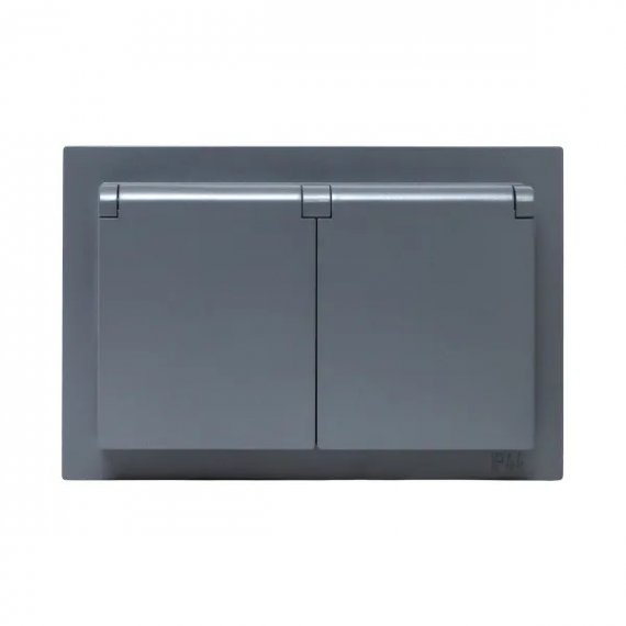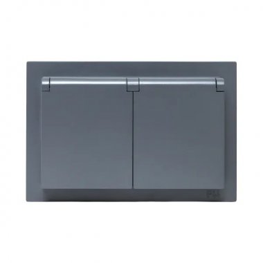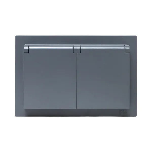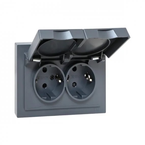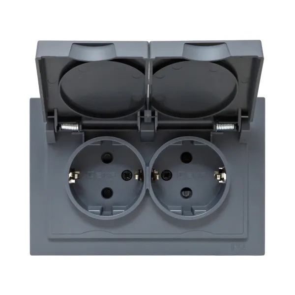 Механизм розетки двойной, 16А, IP44, с заземлением, со шторками, с рамкой, с крышками, графит Эпика EKF