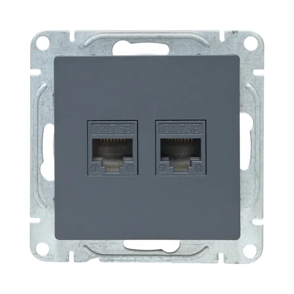 Механизм розетки RJ45 - 2шт, (cat5), графит Эпика EKF