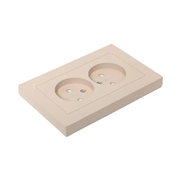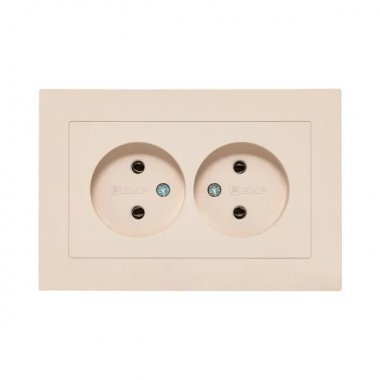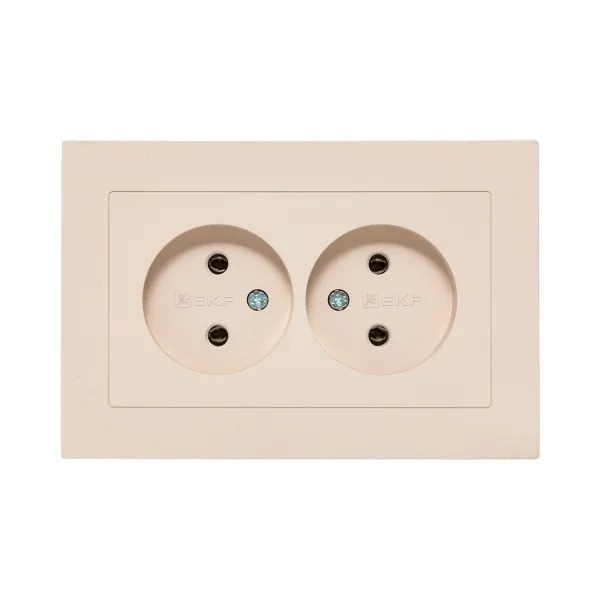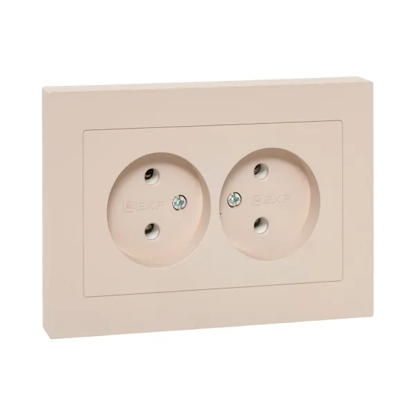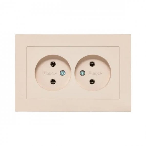 Механизм розетки двойной, 16А, без заземления, без шторок, с рамкой, кремовый Эпика EKF