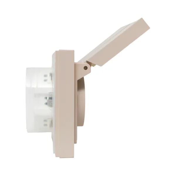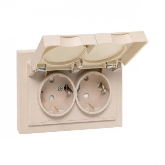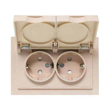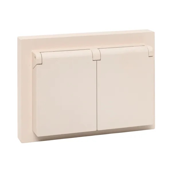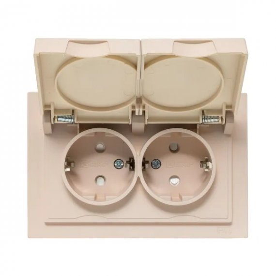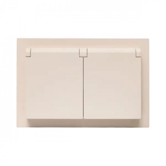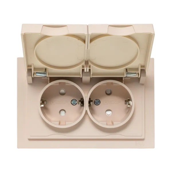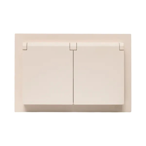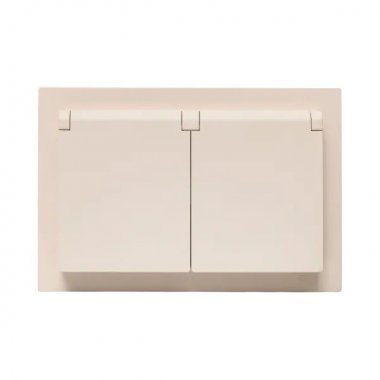 Механизм розетки двойной, 16А, IP44, с заземлением, со шторками, с рамкой, с крышками, кремовый Эпика EKF