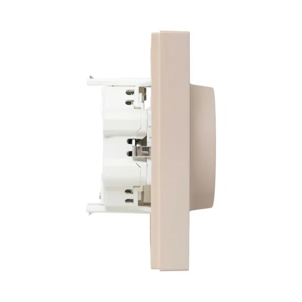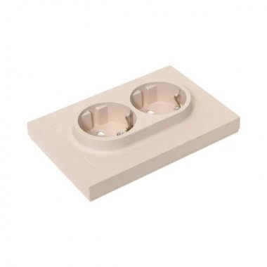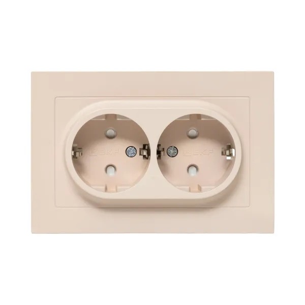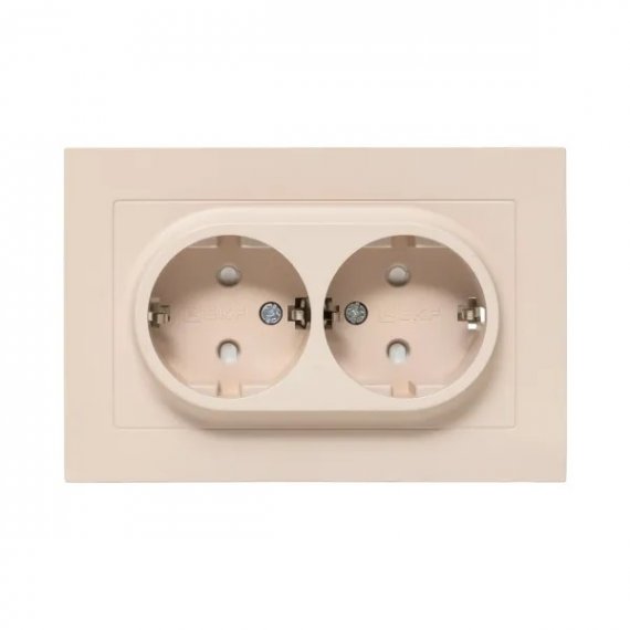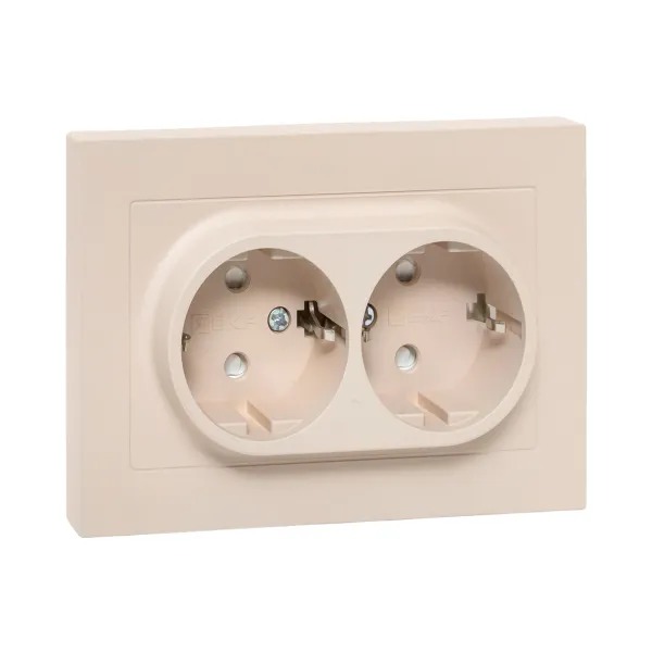 Механизм розетки двойной, 16А, с заземлением, со шторками, с рамкой, кремовый Эпика EKF