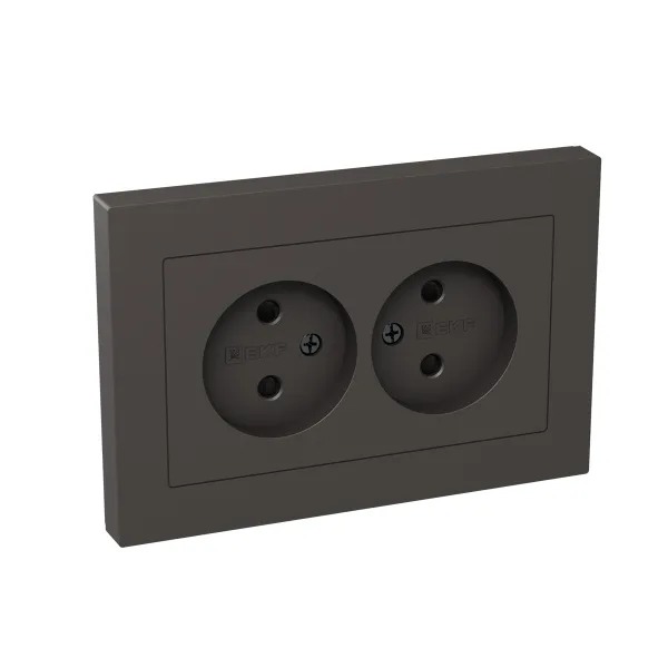 Механизм розетки двойной, 16А, без заземления, со шторками, с рамкой, мокко Эпика EKF