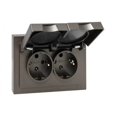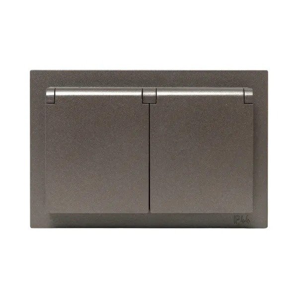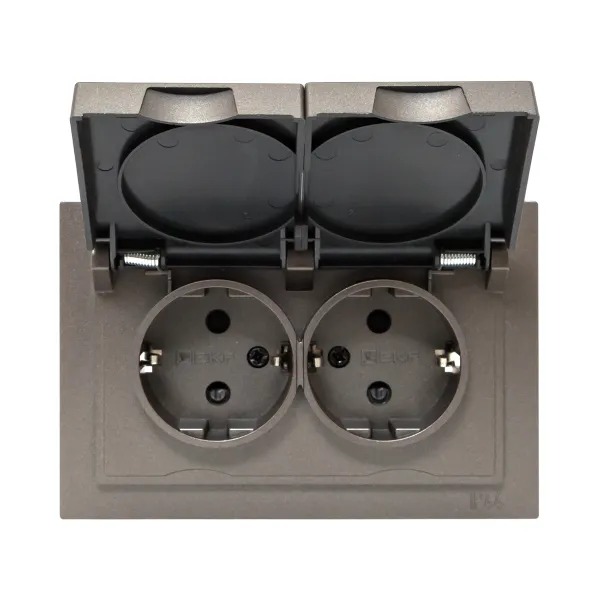 EKF UP1-SOM-211-44 Механизм розетки двойной, 16А, IP44, с заземлением, со шторками, с рамкой, с крышками