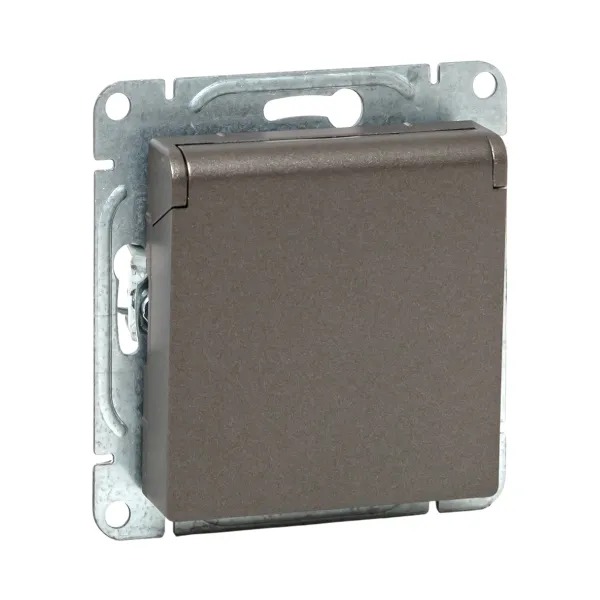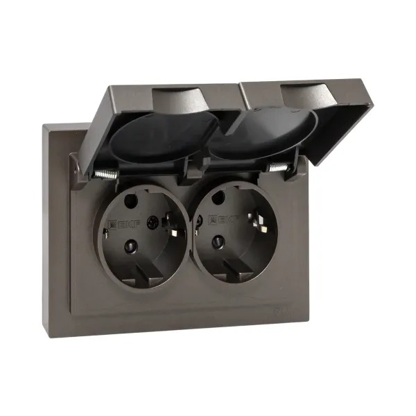 Механизм розетки двойной, 16А, IP44, с заземлением, со шторками, с рамкой, с крышками, мокко Эпика EKF
