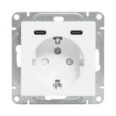 EKF UP1-SOW-111-2USBC Механизм розетки с USB-C - 2шт, 16А, с заземлением, со шторками, белый Эпика