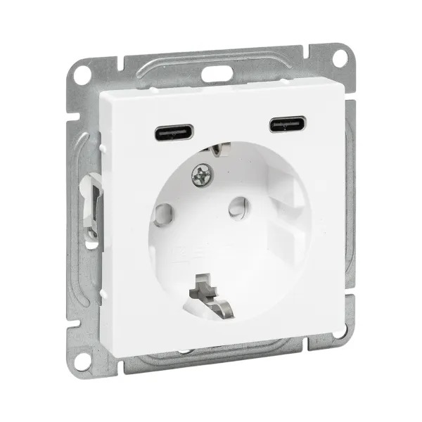 Силовая розетка с двумя USB Type-C портами EKF коллекции «Эпика» с заземлением и защитными шторками - надежное и стильное решение для безопасного подключения электроприборов. USB Type-C разъёмы позволяют напрямую заряжать устройства без использования адаптеров. Защитные шторки на контактах предотвращают случайный контакт с токоведущими частями, обеспечивая безопасность детей и домашних животных. Корпус выполнен из прочного пластика, устойчивого к воздействию ультрафиолета, что обеспечивает долговечность материала. Изделие совместимо с медным и алюминиевым кабелем, имеет винтовые клеммы. Винты имеют одинаковый шлиц, поэтому замена биты при монтаже не требуется Для гармоничного оформления интерьера рекомендуется использовать с рамкой из той же коллекции.
