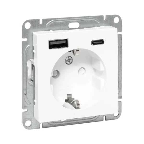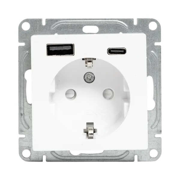 Механизм розетки с USB-A+С - 2шт, 16А, с заземлением, со шторками, белый Эпика EKF