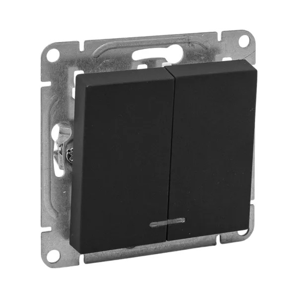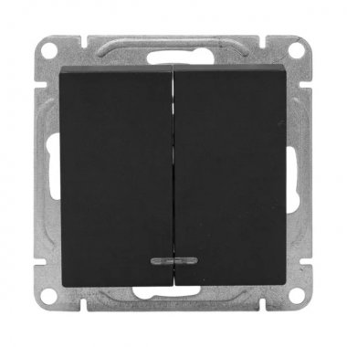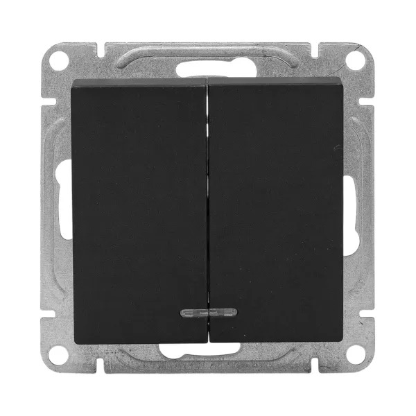 Механизм выключателя, двухклавишный, с подсветкой, чёрный Эпика EKF