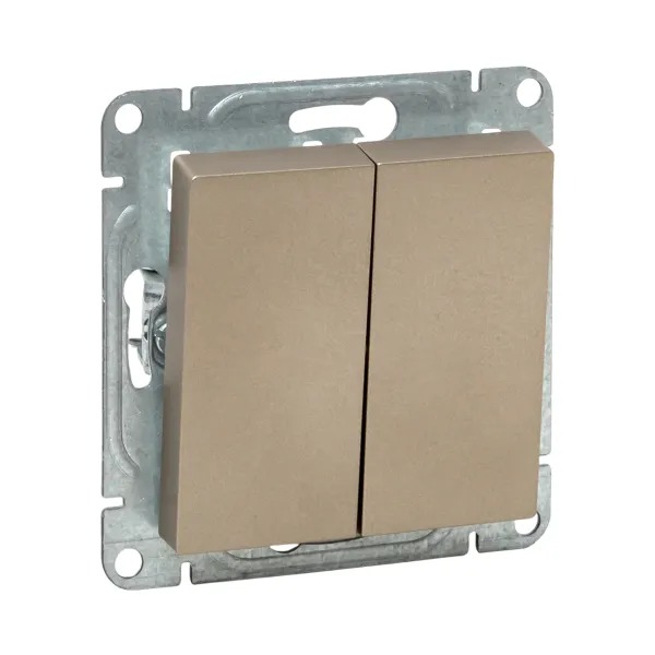 Механизм выключателя, двухклавишный, проходной, шампань Эпика EKF