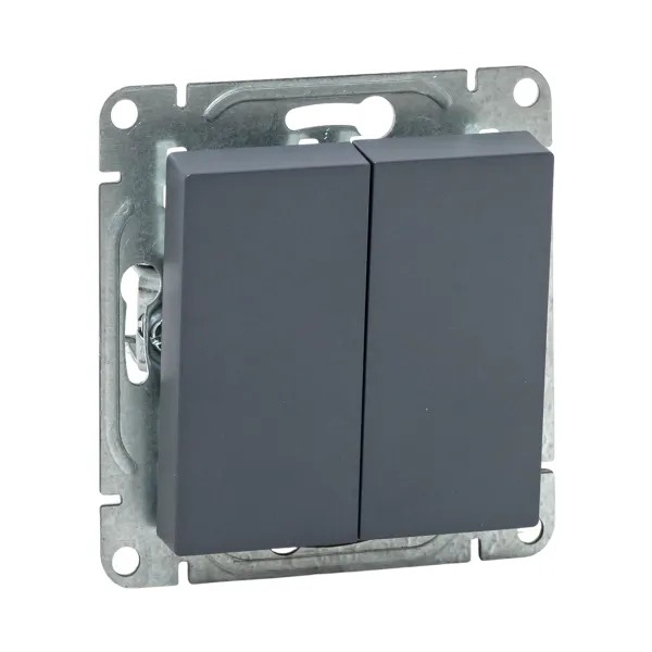 Механизм выключателя, двухклавишный, проходной, графит Эпика EKF