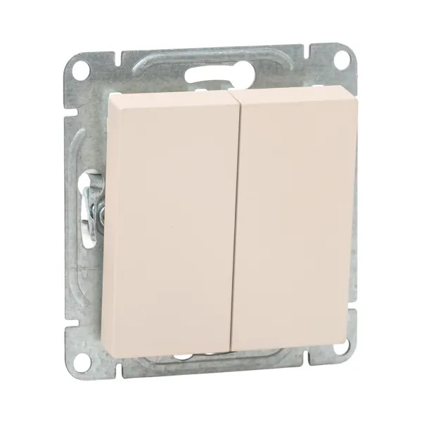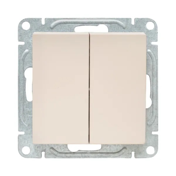 Механизм выключателя, двухклавишный, проходной, кремовый Эпика EKF