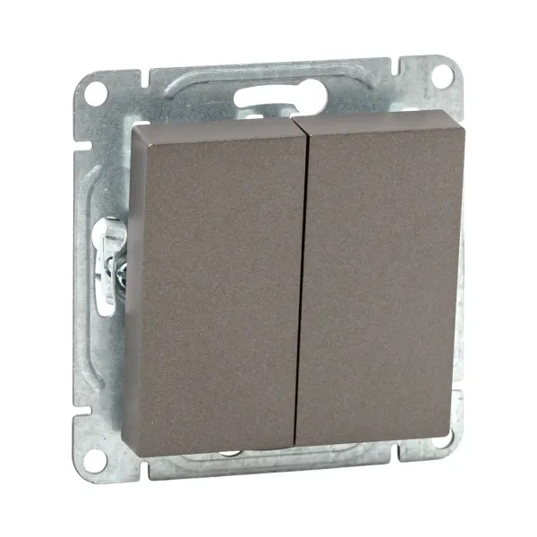 Механизм выключателя, двухклавишный, проходной, мокко Эпика EKF