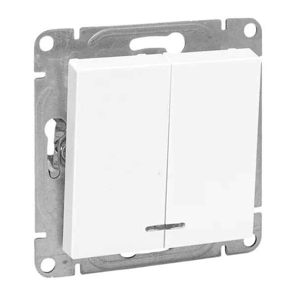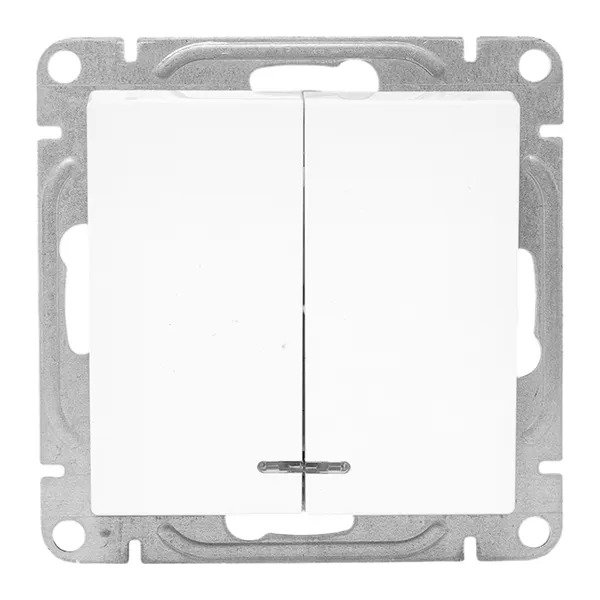 Механизм выключателя, двухклавишный, с подсветкой, белый Эпика EKF