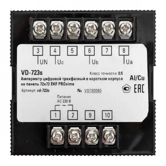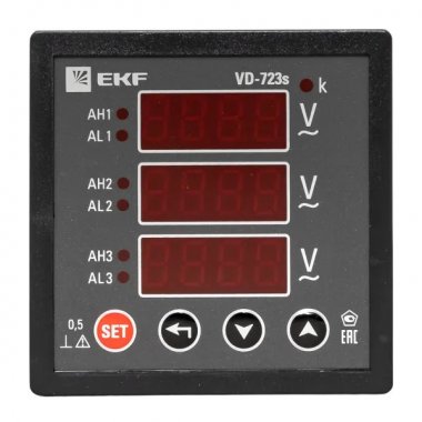 Вольтметр VD-723s цифровой на панель 72x72 (квадратный вырез) трехфазный в коротком корпусе EKF PROxima