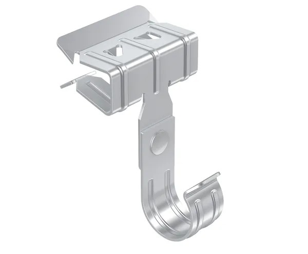 - Зажим балочный под перфоленту можно использовать при прокладке труб большого диаметра, например, при прокладке систем дымоудаления или вентиляции, в тех местах здания, где нет возможности закрепить трассу под крышей или вдоль стены.