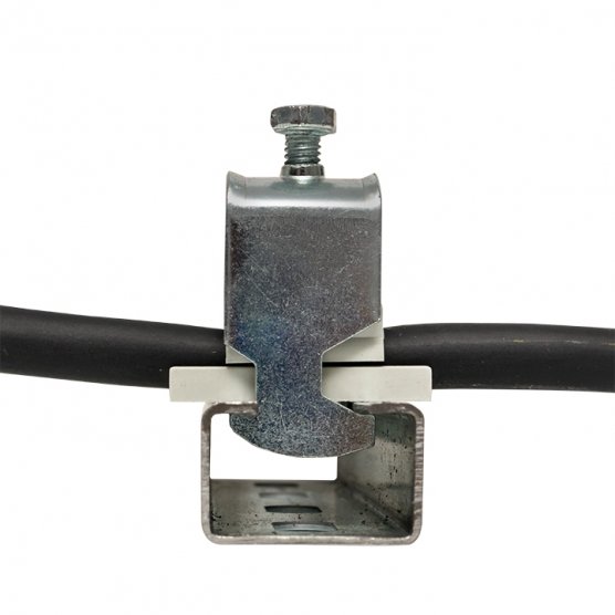 Зажимы применяются для горизонтальной и вертикальной прокладки кабеля на С-профиль, также подходят для фиксации кабелей, вводимых в электротехнический шкаф. Зажимы выполнены из оцинкованной стали, с установленным пластиковым держателем. Монтируются они быстро и просто, без использования специального инструмента. Благодаря пластиковому держателю кабель не повреждается в процессе установки и эксплуатации. Широкий размерный ряд охватывает проводники с диаметром от 6 до 64 мм.